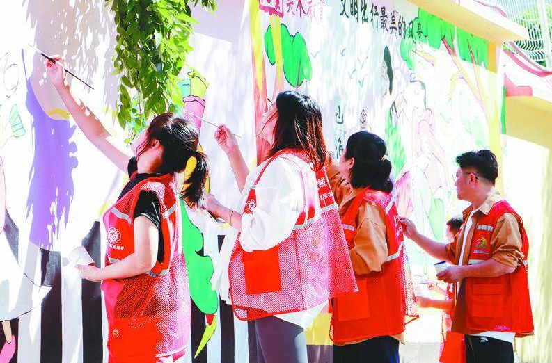 鲅鱼圈区志愿者手绘文化墙。辽宁文明网供图