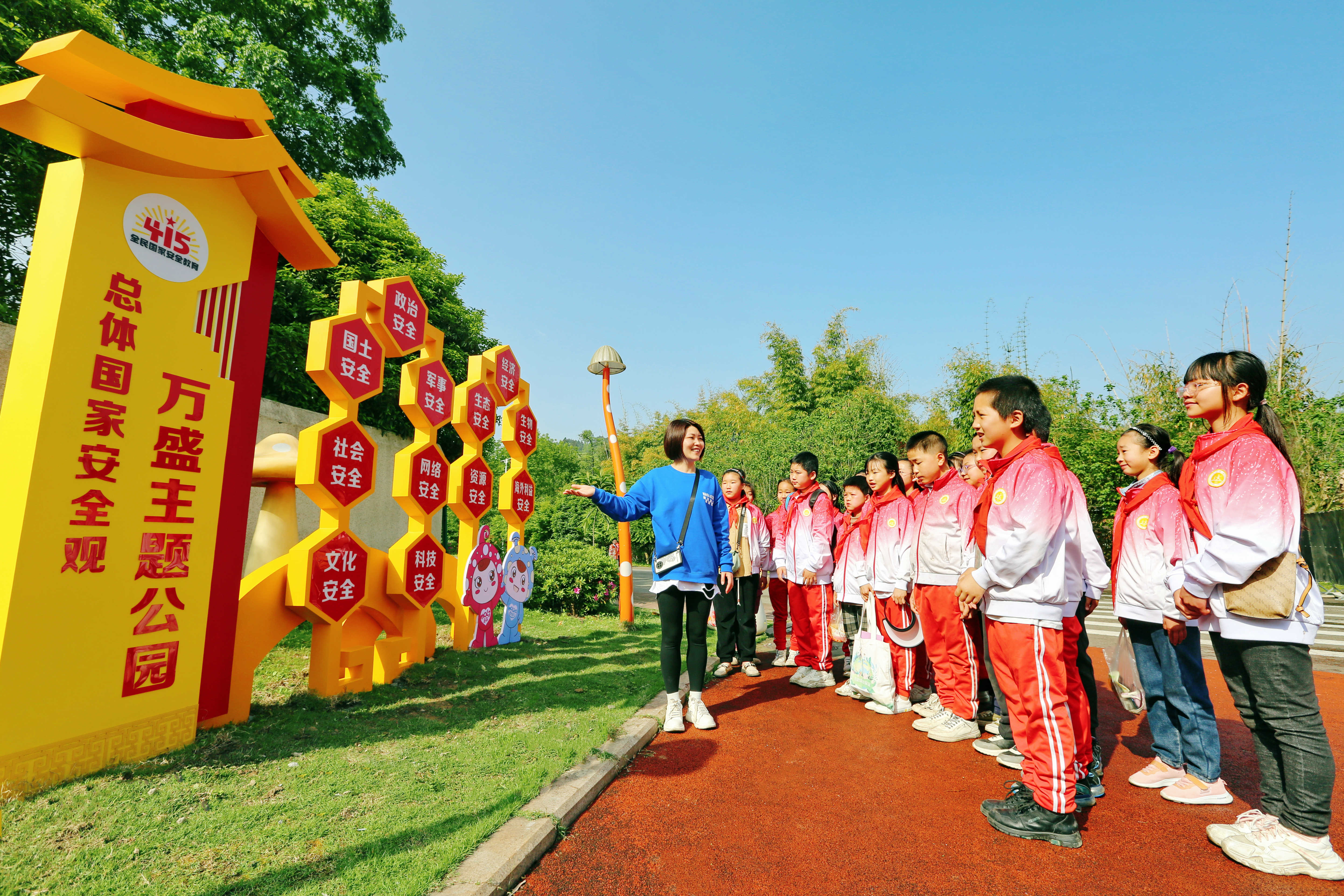 学生们正在万盛主题公园参观学习。