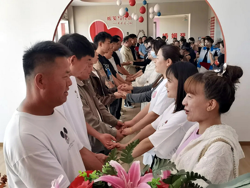 “我们自愿结为夫妻,将共同肩负起婚姻赋予我们的责任和义务……”在石嘴山市平罗县图书馆广场,10对新人在婚姻家庭辅导室辅导老师任丽的幸福婚姻小课堂上,不仅学习了经营婚姻的小技巧,还在宾朋的见证下进行了新婚宣誓。新娘张淑婷、新郎顾凯对未来充满了期待:“今天是个特殊的日子,对我们有着特别的意义,未来我们将相濡以沫、互敬互爱,共同经营好我们的小家庭。”简办婚礼不减爱,集体颁证是一种婚俗新风。该县还开展了“一见‘青’心·团聚你我”青年交友联谊活动,推进移风易俗工作走深走实。汉服体验者杨永睿不仅在轻松惬意的氛围中结交了新朋友,还通过这个桥梁敞开心扉、收获了友谊。“参加这次活动,让我对树立正确婚恋观有了新认识,今后将积极倡导简约文明的婚恋风尚。” 杨永睿说。