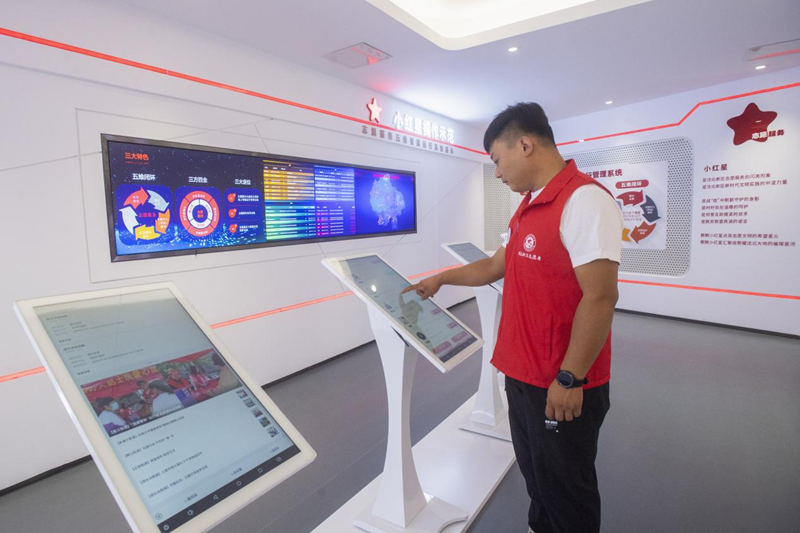 图为沈阳市沈北新区新时代文明实践中心工作人员演示志愿服务五维智能运行管理系统操作(9月19日摄)。新华网发(安呈浩摄)