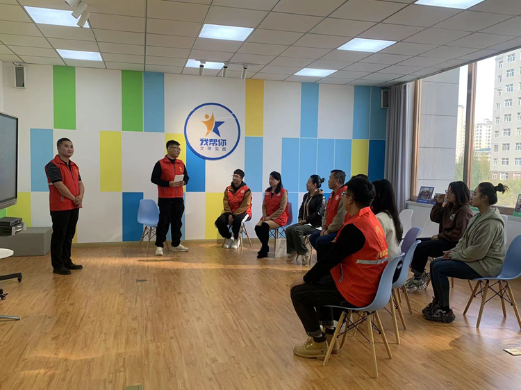 10月23日,志愿服务队在集宁区泉山街道通和社区内开展宣讲活动。新华网 张倩 摄