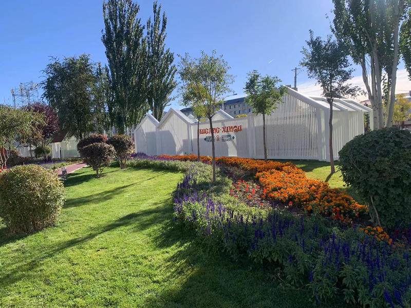 这是呼和浩特市回民区呼钢小区外的口袋公园,改造后重新划分了空间,铺种草坪,栽植了树木和应季花卉,提升了公园整体的景观效果。新华网 张倩 摄