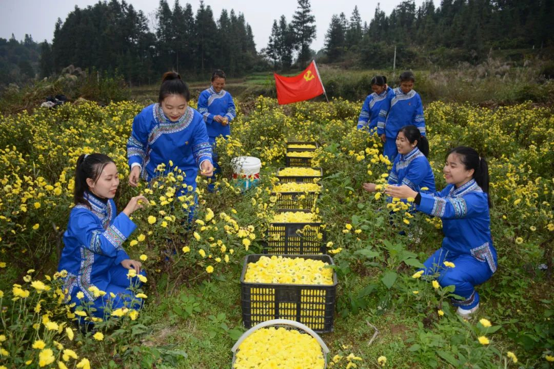 共和村引进天柱县功夫菊农业开发有限公司,建设菊花加工厂,明确“党建合作社+农户”“公司+农户”合作种植方式,形成了集育苗、种植、收购、加工等一条龙的生产线,推动“小菊花”种植发展成为“致富业”。