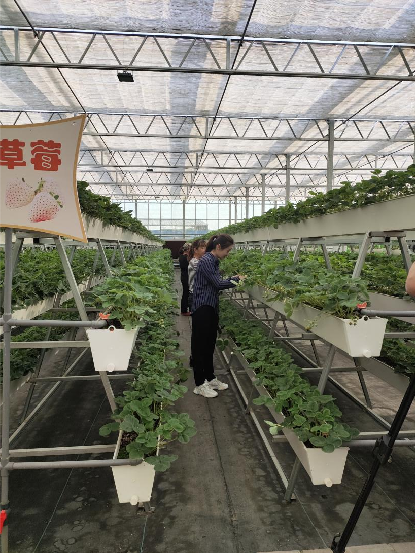 郭子涵查看现代设施农业农作物长势。受访者供图