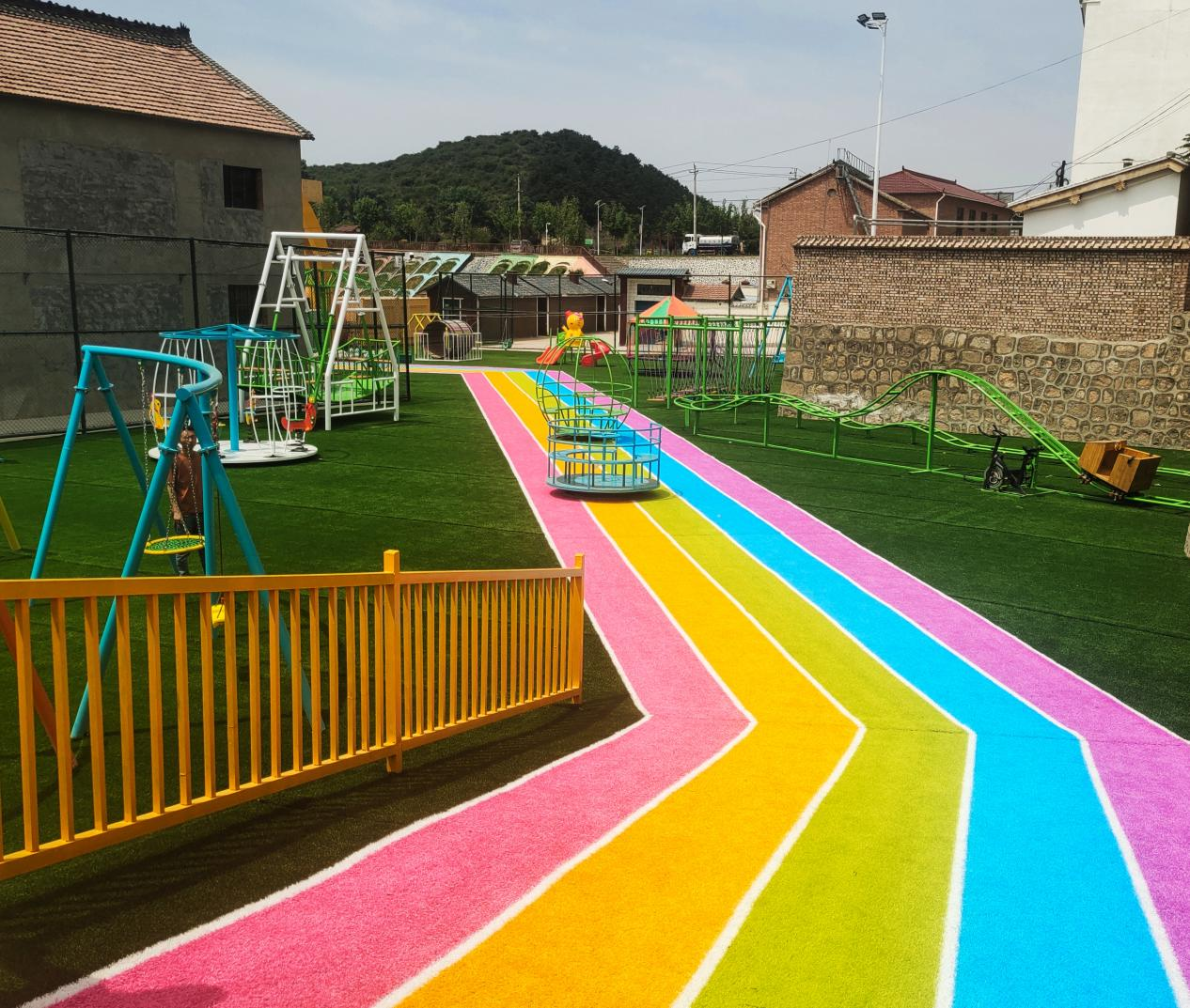 “风雨长廊再挂上三四条风车,动静结合能成为游客观光打卡的一个点。”阳光下,郭子涵正带着乡亲们装扮亲子乐园,这个村上自建的亲子乐园配置了多种主题化、创意化无动力游乐设施,是秦家庄村从纯农业向农文旅康融合发展的新探索。