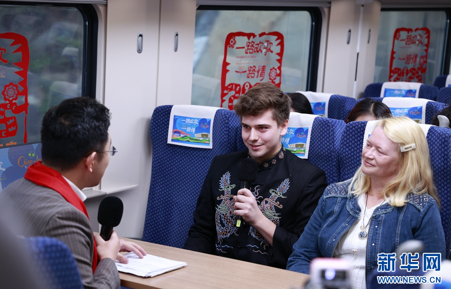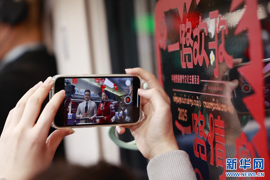 1月14日春运首日,昆明南至万象的D87次国际旅客列车上,“一路欢歌一路情——中老铁路春节文化主题活动”精彩上演。车厢内,中老铁路的见证者、受惠者、体验者们齐聚一堂,通过歌舞表演、乐器演奏、魔术杂技表演、现场访谈等,生动讲述这条幸福路、发展路、友谊路上的动人故事。演出共持续4个多小时,引得乘客们掌声、笑声不断,“一路欢歌一路情”,迎接2025年春运的到来。(徐华陵 念新洪)