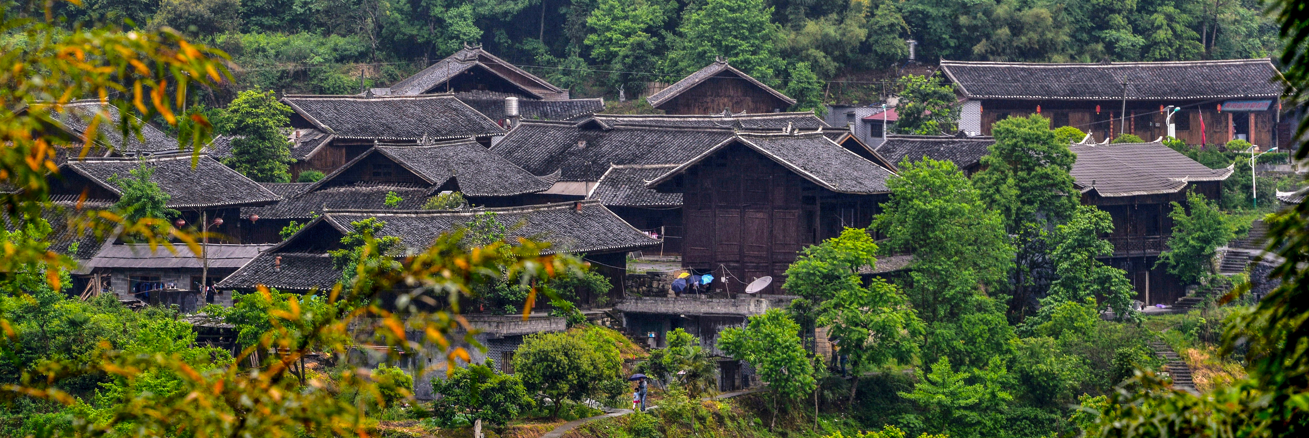 郁郁葱葱的杨梅林中房舍井然。