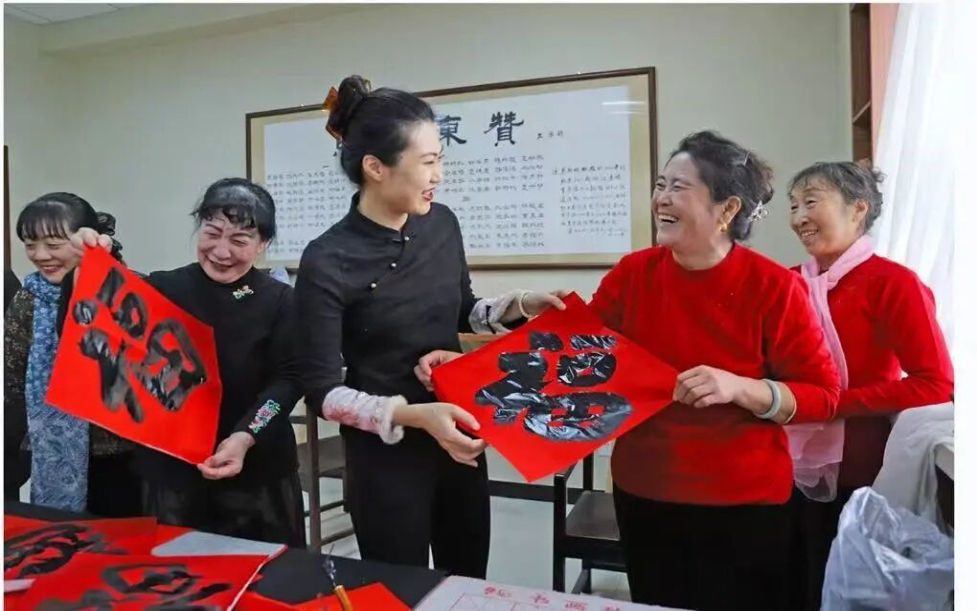 居民共写福字过佳节。张家口文明网供图
