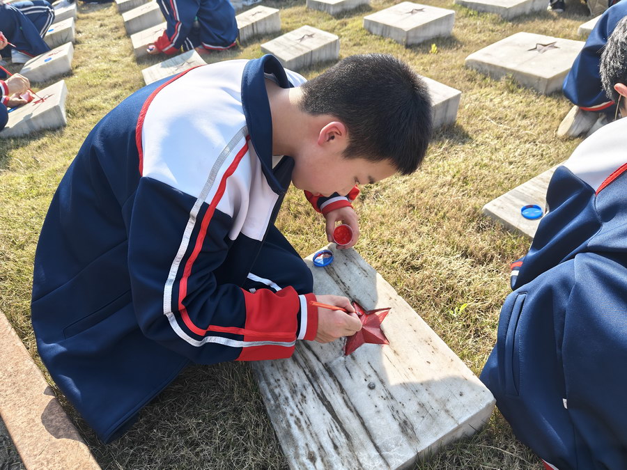雅安当地青少年在红军百丈关战役烈士纪念园参加“我为英烈描红星”活动。四川文明网供图