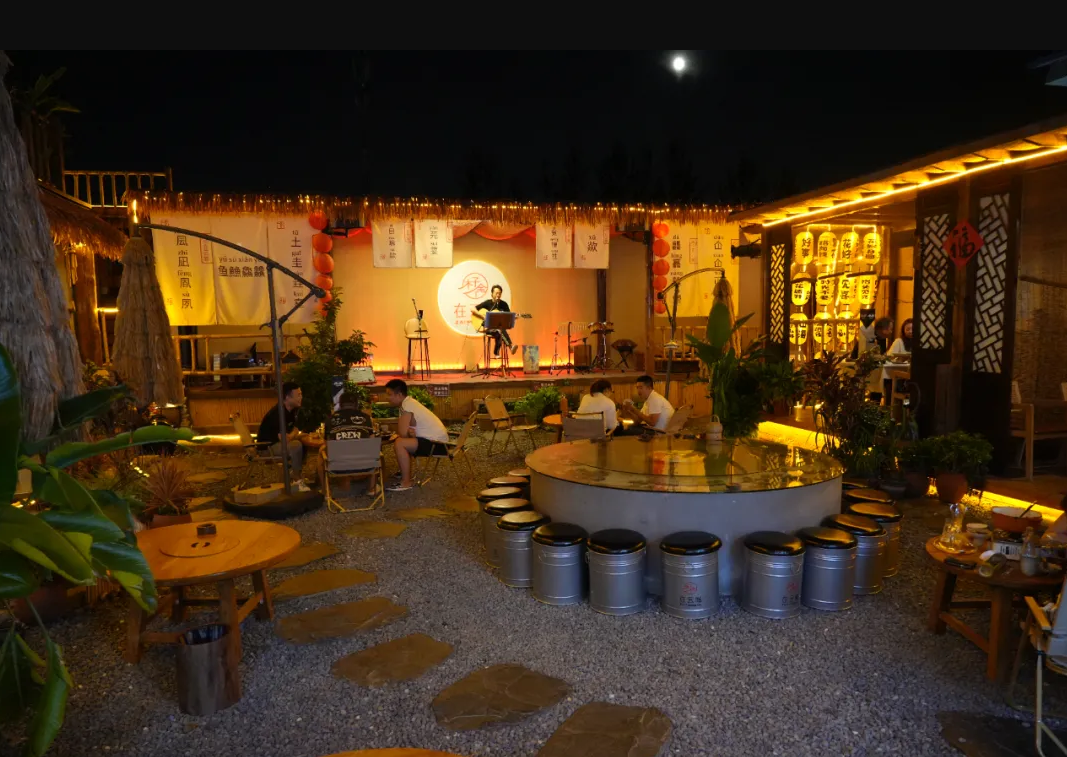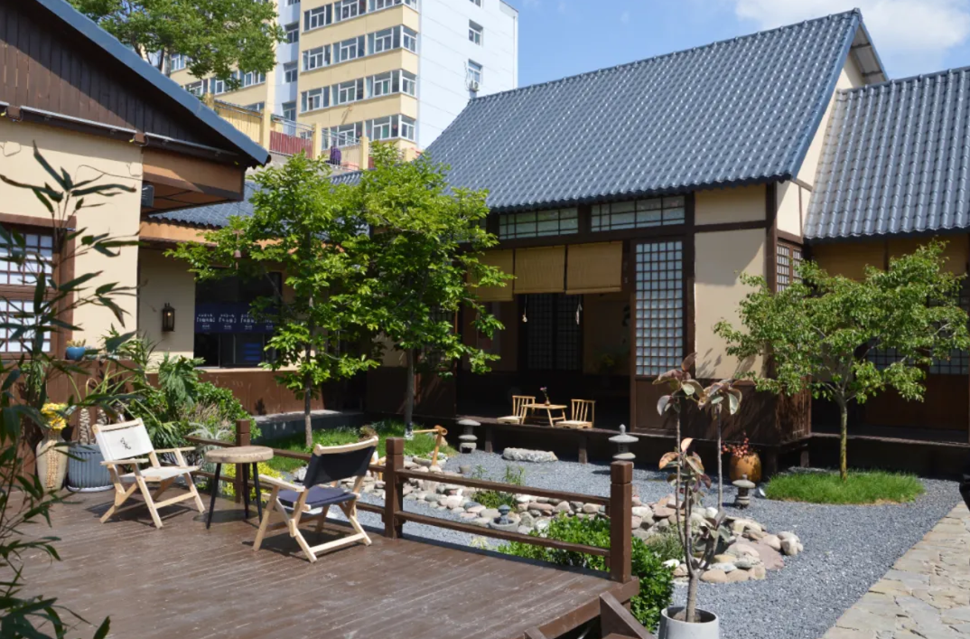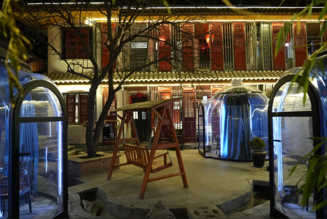 游客在庭院中享受生活。