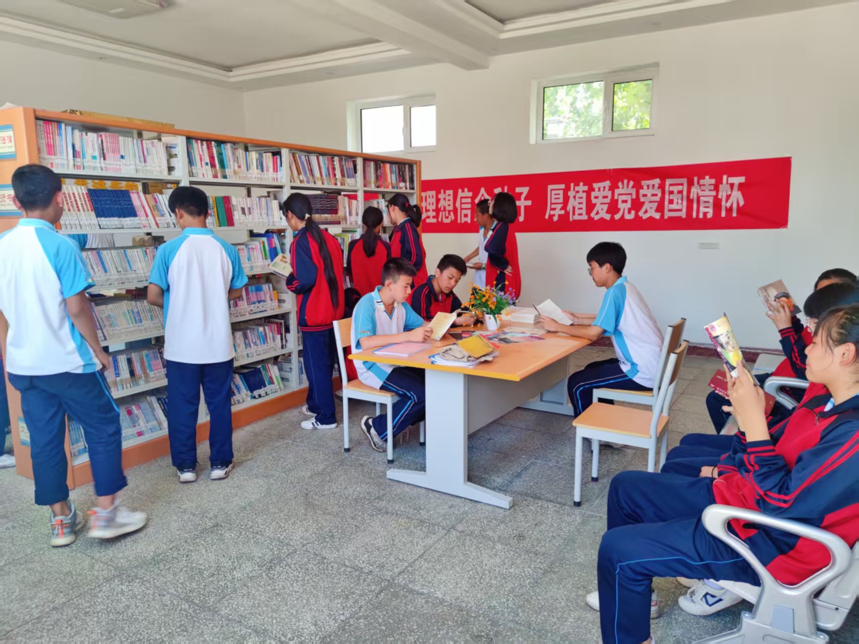 孩子们在农家书屋认真阅读。